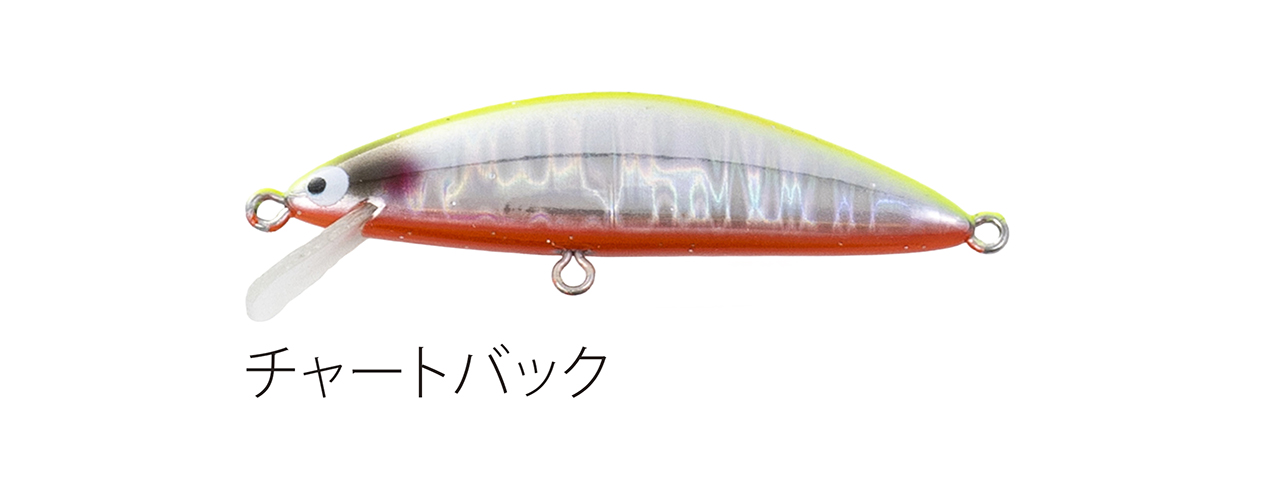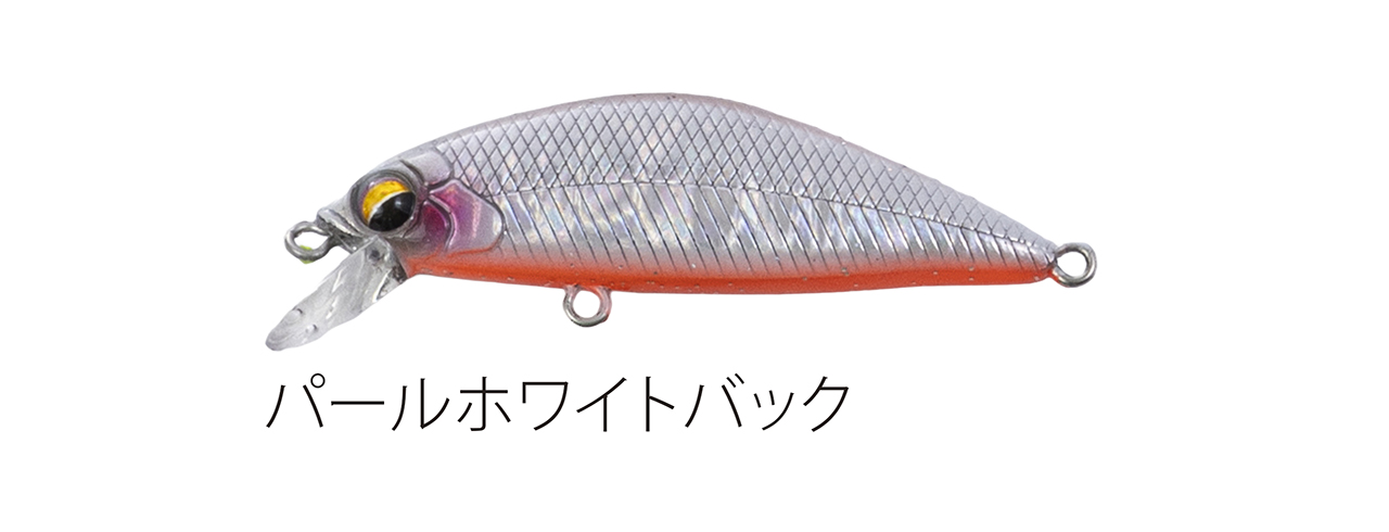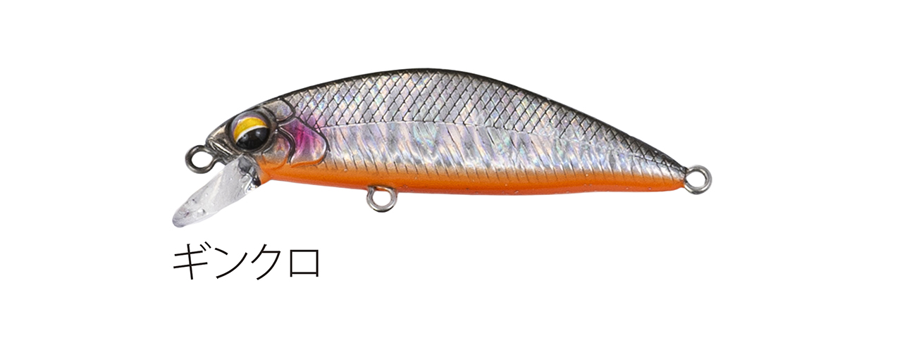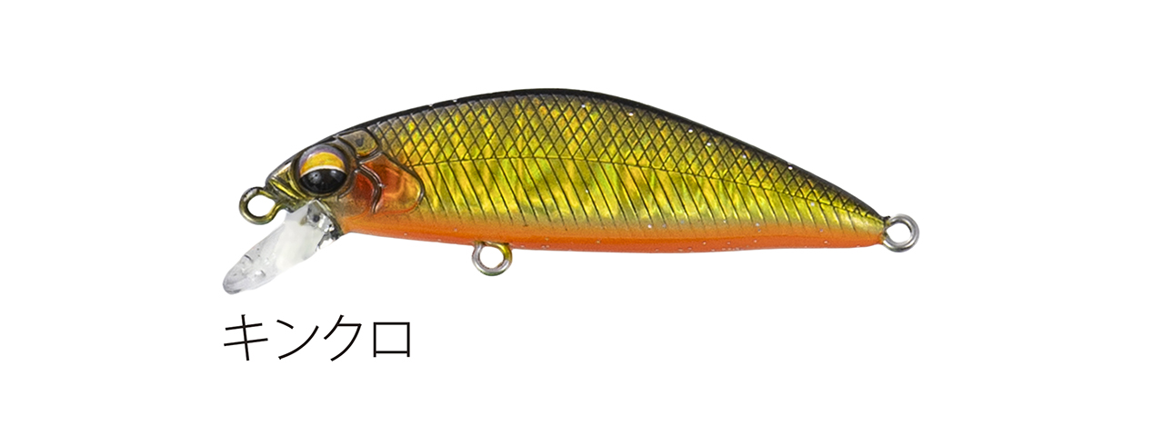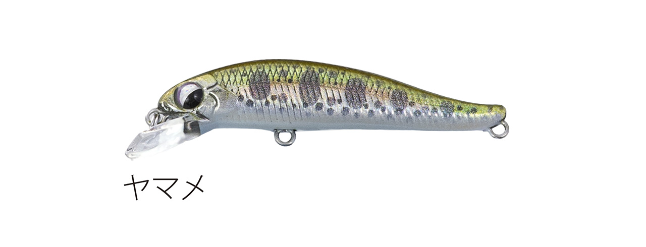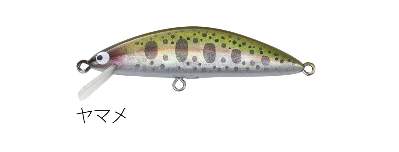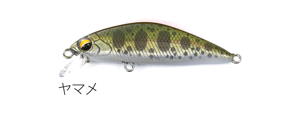 流れが浅く平たい沢の釣りで使い勝手のいい適度なシンキングタイプで、能力のスペック値をロッドワークに対するレスポンスに全振りしたミノー。ロッドワークに対してこれまで以上に機敏に反応するミノーを求めた結果、辿り着いたルアー。48mmサイズで重さ3g台前半尖ったコンセプトのミノー