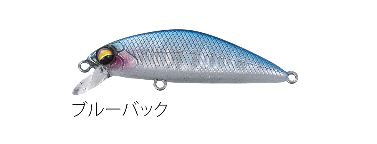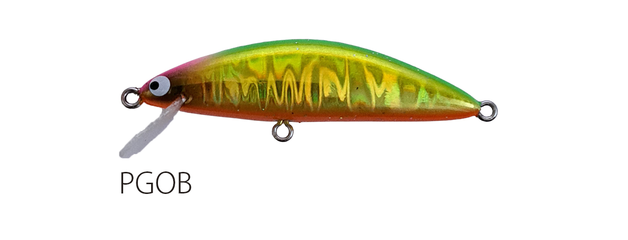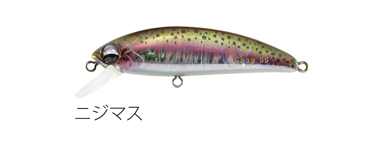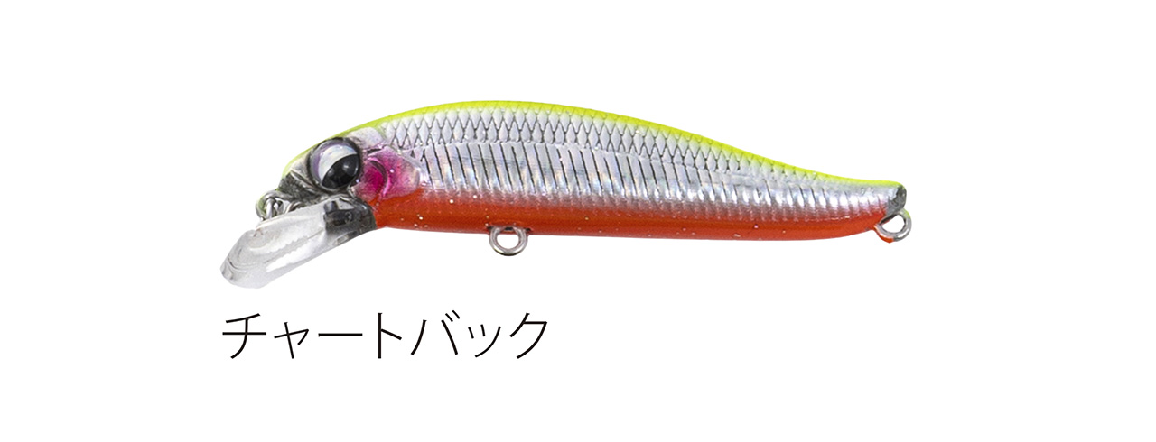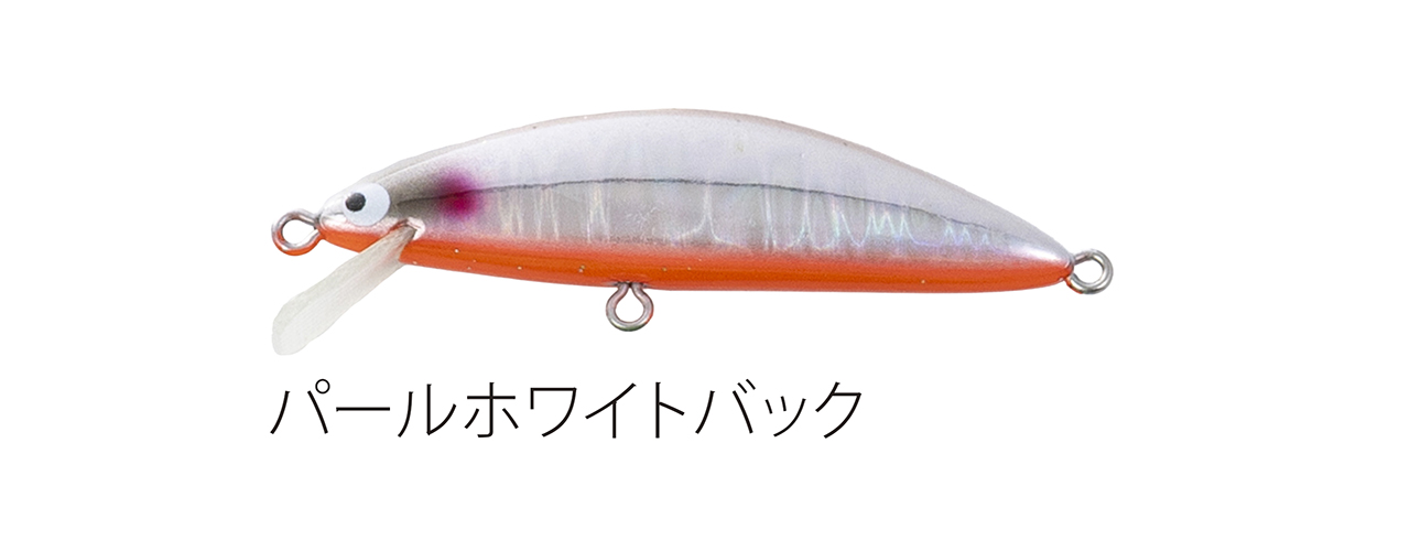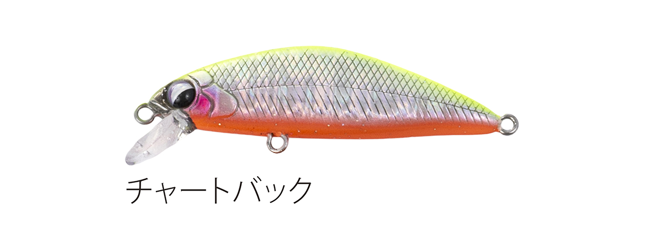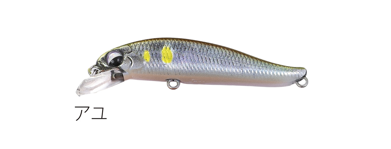 流れが浅く平たい沢の釣りで使い勝手のいい適度なシンキングタイプで、能力のスペック値をロッドワークに対するレスポンスに全振りしたミノー。ロッドワークに対してこれまで以上に機敏に反応するミノーを求めた結果、辿り着いたルアー。48mmサイズで重さ3g台前半尖ったコンセプトのミノー