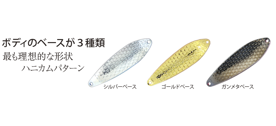 今までにないタイプのバタバタとしたスーパーアピール系シンキングミノー。強い波動を発生させて視界の効かない濁った本流でサクラマスの注意をルアーに向ける。11gはトロ瀬からトロ場でデッドスローからハイスピードまでキビキビと泳ぎ、深場の低活性の魚にも効果を発揮する。 17gのヘビーシンキングは、深場のトロ瀬からトロ場はもちろんさらに瀬でも使っていただきたいミノーである。16.5g(T-3)はアクションはそのままだが特徴は流れに強く、11g・17gよりレンジが浅く全く別物として考えてほしい。アピール力・効果共に今までに無いほど絶大なシンキングミノーである。オーナー社ST-46 #4フック標準装着。