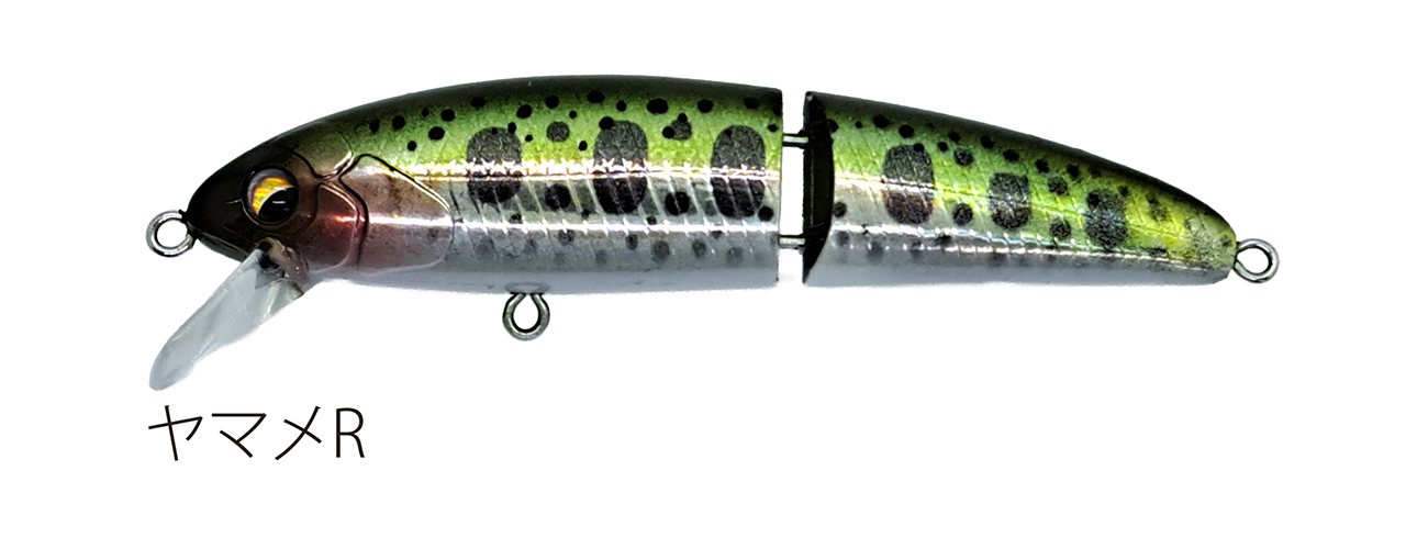 飛距離に優れ着水後の沈下速度は早くボトムレンジを素早く確保する。リトリーブでは安定したウォブリングアクションでトゥイッチングではビラを打ちフラッシング効果も抜群でハイアピールを実現する。アップ、クロス、ダウンキャスティングどの方向からでも大きめのリップが流れを掴んで離さない水面に飛び出しにくいのである。尺ヤマメ、40cmアップイワナは何故これまで大きくなったのか?警戒心が強くバイトエリアが狭いと思われるレンジを刻まなければ勝負にならないのである。